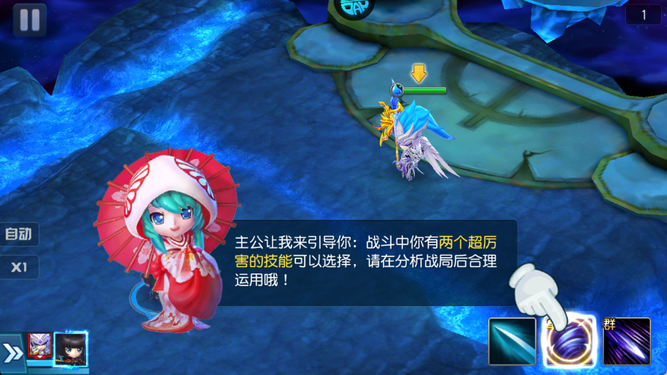 4、安排出战角色后,开始回合制战斗,通过右下方的技能按钮发动攻击应对敌人。