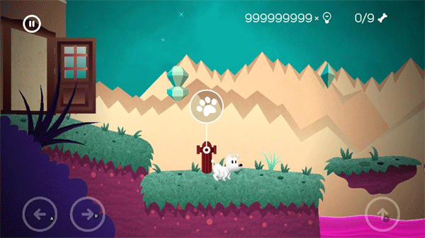 1、在游戏中玩家们需要通过下方的方向按钮来控制着小狗的移动,并且在前进的时候由于那些场景中会出现一些不同的困难,所以玩家们还要能够很好的将那些道具收集并且利用起来,帮助我们正确的前进。