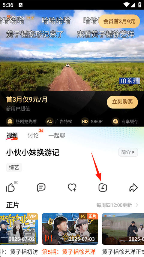 2、进入播放页后点击一起聊,和大家一起实时观看,交流影片内容;