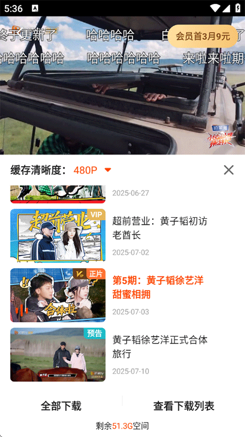 4、选择集数或期数,点击即可下载,缓存的视频前往查看下载列表查看。