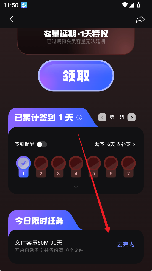 容量不够的时候还可以去福利社完成任务来增加空间,操作简单。打开分享链接也很方便,在浏览器复制链接就能看,登录后直接存到云盘里。