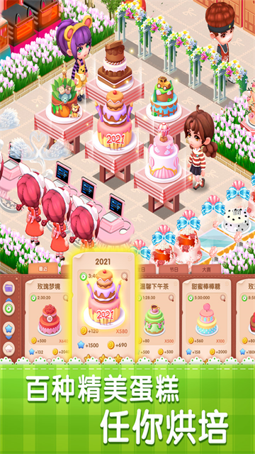 《梦幻蛋糕店》是一款以经营蛋糕为主题的模拟手游,画面精美细节丰富。玩家需要从一个小店铺开始,通过制作和销售蛋糕,逐步将店铺发展壮大。游戏里有详细的教程教玩家如何从零开始做蛋糕到开店赚钱,新人玩家还能通过完成任务获得免费钻包,用来购买材料礼包,快速提升店铺等级。