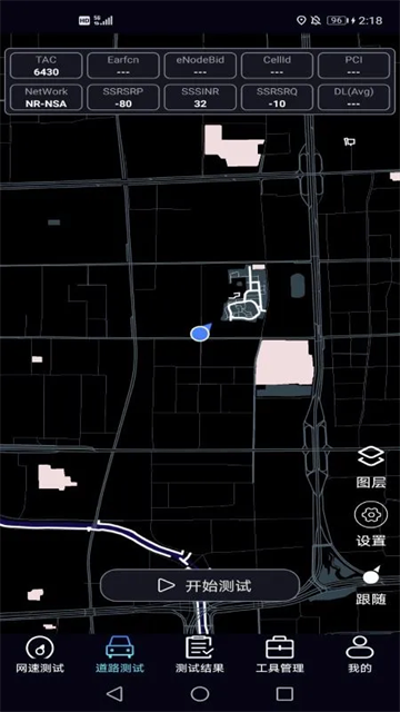 5、第二个功能是道路测试,你在车上或者走路,能测试一路的信号强度,会通过颜色在地图上标注出来,测试完成以后,能导出表格文件,方便后期进行数据处理