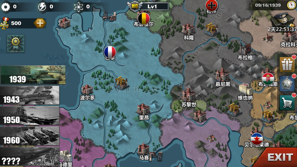 世界格局随时间发生变化,你可以选择任何国家加入战争。