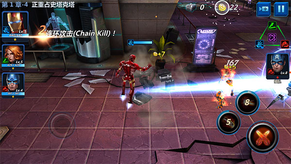 当你完成各种任务时,释放每个角色独特的超能力。用铁人的Unibeam轰击敌人,用美国队长的盾牌以正义的名义猛击对手!