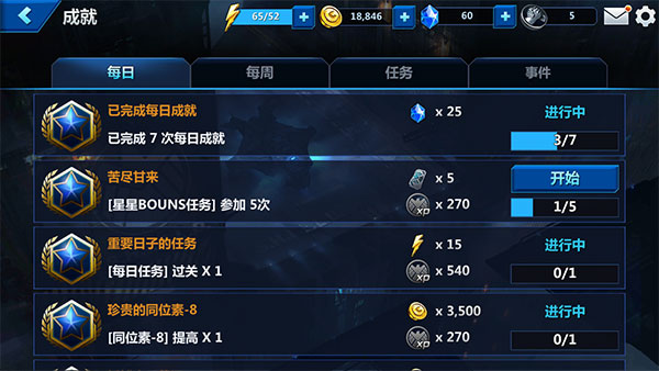 推荐大家每天上线先浏览一下每日成就,寻找出简单的成就任务,比如说关卡挑战、PVP挑战和英雄强化等类型的任务,先完成将最容易得到的奖励先拿到手,然后再按照其它成就的要求进行游戏,努力拿到所有的成就奖励。