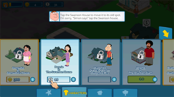 恶搞之家是一款根据经典动画改编的模拟经营游戏,玩法简单又搞笑,任务内容包括重建房屋、为孩子买裤子、帮助邻居等轻松有趣的日常事务。玩家可以通过点击角色头上的“冥想云”让彼得自动完成任务,每次完成任务都能获得奖励,金币可以在商店购买所需道具。游戏特色鲜明,比如打造能穿在裤子里的蛤蟆、收集搞笑服装、装饰小镇等,这些都让人忍俊不禁。