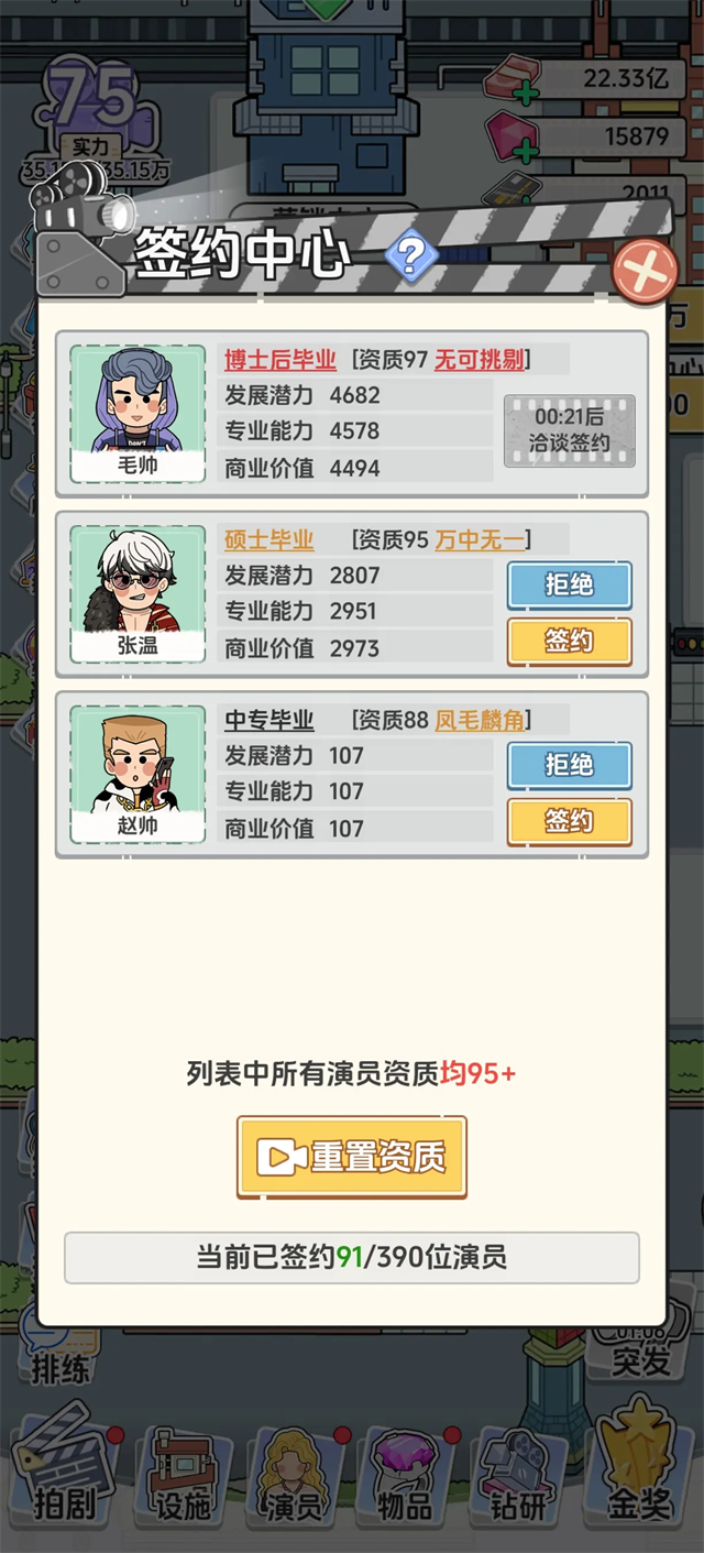 这款游戏让我感觉像一个小型的影视公司CEO,从签约演员到制作短剧,每一步都得亲力亲为。刚开始可能会有点手忙脚乱,但慢慢摸索就会发现很有成就感。尤其是看到自己培养的演员一步步成长,甚至拿下大奖的时候,真的会忍不住炫耀一番。