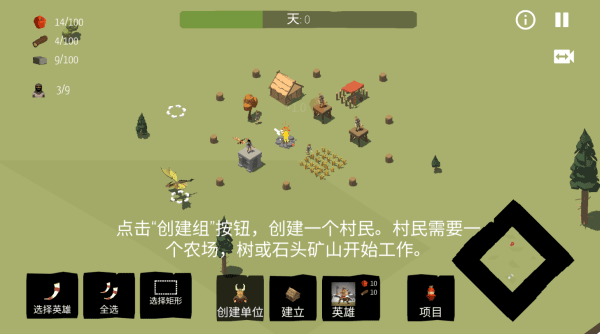 2、创建农场,矿山和种植树木,以聚集资源-以鹿和攻击敌人与他们的控制!