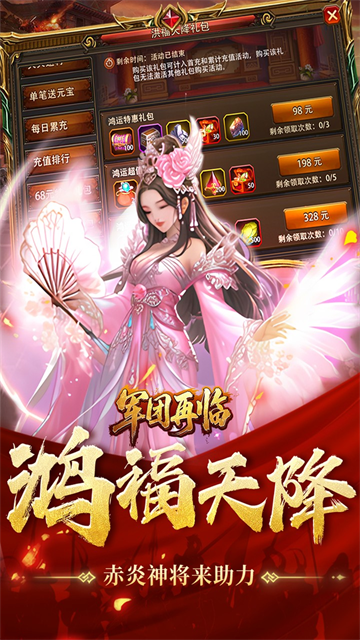 【无限福利】每日登录皆送648充值卡,元宝源源不断花不完。