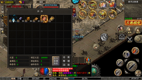 6、刷怪获得的道具奖励可以点击屏幕右侧的背包以查看。