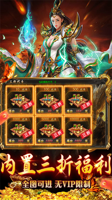 4、内置3折福利,土豪玩家职业:战战,道道,法战。