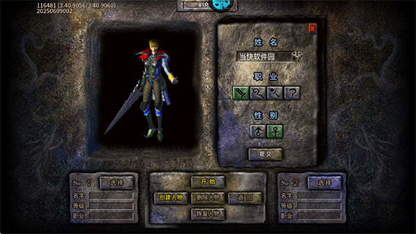 2、创建你的人物,选择职业、性别,再取一个ID,完成后点击开始;