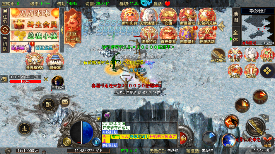 2、“免氪爽爆亿万充”——充值卡通过活动、副本、BOSS等多种方式掉落,几乎不花钱就能体验氪金玩家的豪华感受。