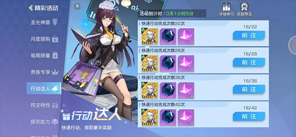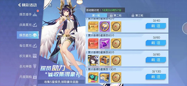 这个也就是重磅活动了,是大家都要注意的活动,我的建议最好是从开服的14天后开始做,那时候你的队伍基本成型。如果晚了也不要紧,还是能做完的,只是比别人慢一点。我就是21天开始攒的,要攒的东西有精英招募券(⭐⭐⭐)、高级招募券(能攒多少攒多少,别用就行,不用刻意买)、和五星各式各样的碎片(⭐⭐⭐),特异招募券(和高招同理)。注释:四星合成五星的不算哦。五星碎片可以通过爬塔和每日委托,所以你每日委托就尽量刷五星碎片来做。然后放大集结的所有奖励。