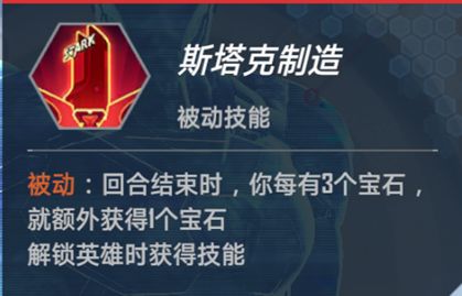 斯塔克制造:被动,回合结束时,你每有3个宝石,就额外获得1个宝石。