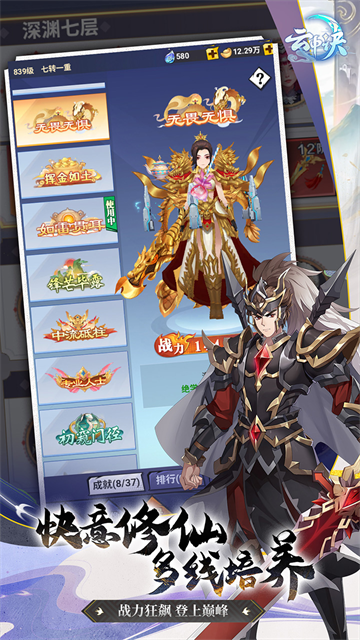 云中诀是一款二次元国风仙侠唯美修仙3D游戏!在游戏中你需要招募伙伴共同历练,不断迎接各种挑战,在降妖除魔中持续提升自己的仙位等级,直至进阶仙帝之路,畅享万人膜拜的超快感!此外游戏倾心设置离线挂机,更有惊喜福利在游戏里等着你!极品时装,强力伙伴闯关就送!