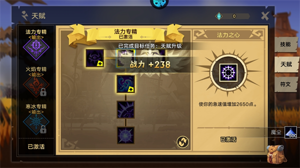 4、激活天赋升级技能