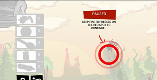 大家切记操作的第一要点就是手指必须时刻保持在屏幕上不能离开。因为只有手指在屏幕上持续拖动才能做出击打动作。而且手指一旦离开屏幕,游戏就会自动暂停。