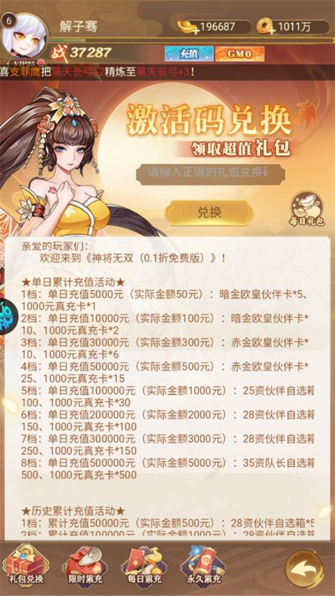 【万元红包】升级送五万元现金充值,免费激活满级GM,特权商城全1元宝!