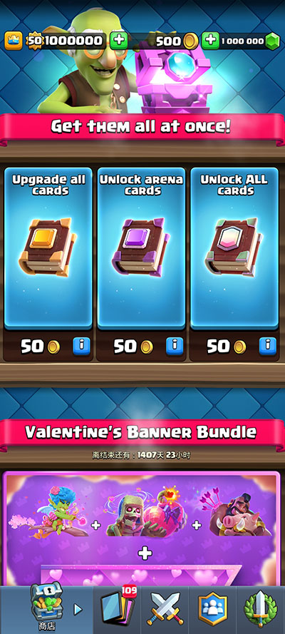 4、打造并升级您的卡牌收藏,包括《Clash Royale》皇室成员和数十个来自于《部落冲突》的部队、法术和防御设施
