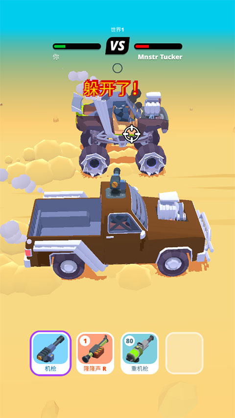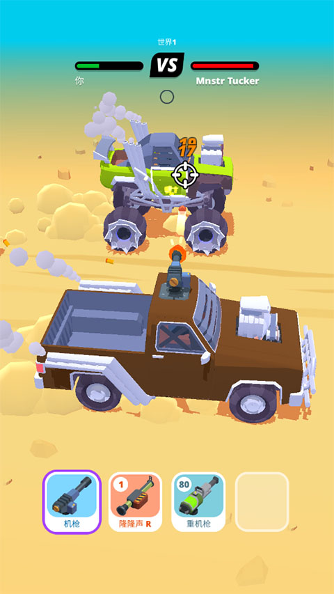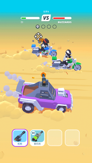沙漠战车中文版是一款赛车和射击相结合的趣味十足的闯关射击游戏,与传统的射击游戏相比,玩家会在移动过程中来回射击,给玩家带来全新的射击体验。游戏中,玩家需要驾驶自己的沙漠战车在沙漠中疾驰,面对对手的追击,可以通过各种武器射击他们,并且在射击的同时,还要避开他们开车的碰撞。而且每隔一段时间,敌人就会追上来与你并行,而玩家只需要拉开距离,切换战车上携带各种强大的枪支武器,迅速架起机枪或火箭击倒他们即可。