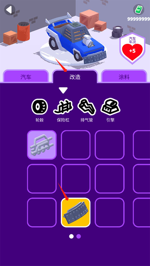 2、选择改造,然后选择对应配件即可