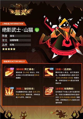 山猫诞生于赤炎山谷,他天资聪颖,自小就练得一身好刀法,但同时他也贪玩好动,凭借这这点刀法跟着其他誓灵去到处闹事。