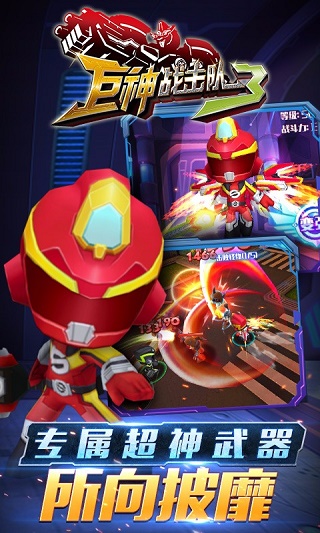 游戏中将原本霸气的真人巨神战士以Q版形式还原,有着炫酷外形的同时也显出一分萌态。广受观众喜爱的红宵卫、黄擎卫等角色都在游戏中一一呈现。游戏中更是为每个角色都设计了炫酷的专属高级武器,手握神装,畅玩一夏!精美的画面品质,炫酷的游戏特效,让玩家在关卡过程中的游戏体验大大增强。游戏中的火山、城市、沙漠等精美的场景大大增加了游戏的现场感,也让关卡中的战斗气氛更加有气势。尤其是每个角色都拥有的独一无二的翅膀,给你更炫酷的外形,让你在关卡中临空作战,傲视全场!
