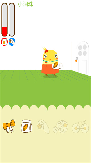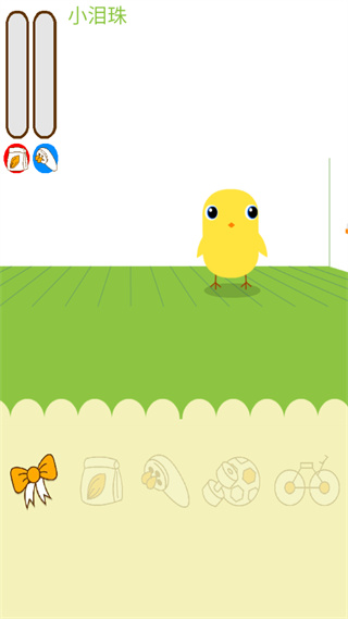 2、接着和你可爱的小鸡喂食洗澡玩游戏,我们可以给自己的小鸡喂食,只要拖动食物到小鸡嘴边,小鸡就会自己吃,不过是连包装袋一起吃,这样似乎有点不健康啊,制作组也太节约成本了吧。每吃一袋就会增加红槽的饥饿度(图示是增加,其实是减少)。给小鸡洗澡就更简单了,点击那个花洒的图标后,花洒就会自动地去帮小鸡完成洗澡,只需要洗一次小鸡的清洁度就会达到100%。给宠物喂饱洗干净就是对宠物好吗?错了!还得陪宠物玩,拿上这个足球,和宠物开心地玩吧,要注意玩足球的同时会让宠物的饥饿度增加和清洁度减少。