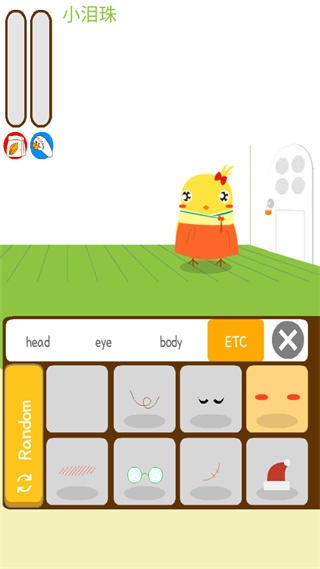 1、首先为你可爱的小鸡捏造一个漂亮的造型,给宠物选择一个好看的发型,发型选择还挺多的,就决定是你了!呆毛发型!眼神同样得选一个萌萌哒的眼神,哎哟,最后一个眼神好可怜呀,就它了。心疼自己的宠物当然得给它穿上衣裳,就这个围裙吧,没事给我下厨做做饭什么的。最后就是脸部特征了,本来想选一个红脸的,但是看见兔耳朵,果断就兔耳朵了,我的小兔鸡?