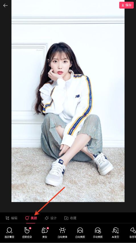 3、在美颜界面通过磨皮等工具平滑皮肤,去除瑕疵。