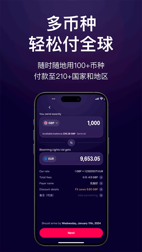 用了一段时间后发现,它功能真的很强大:支持100多种货币,收款、付款都能搞定;最快1分钟开户,手续费还低到几乎没有;最关键的是提现到账特别快,甚至秒级到账。对于像我这样经常要处理跨国转账的人来说,真的是神器!