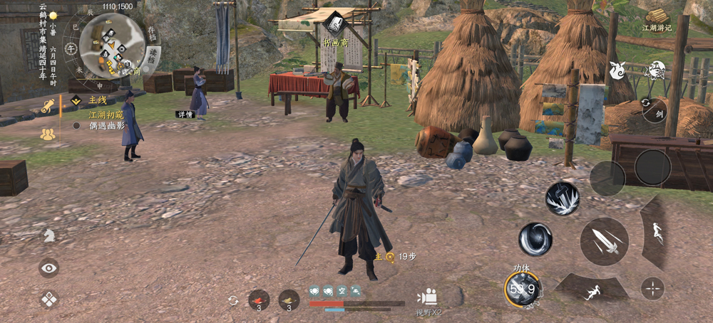 活的江湖: 动态昼夜、真实天气、万物交互(可破坏环境、可拾取万物)。世界不仅仅是背景,更是可互动的舞台。