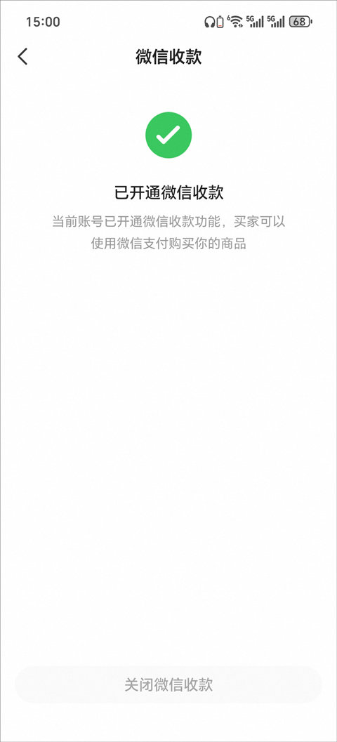 4、最后返回APP,就能看到已成功开通微信支付收款了。