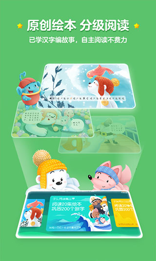 洪恩识字最新版本中精选1200个儿童常用汉字,覆盖人教版、苏教版小学一年级生字的90%以上,每个字有“玩、认、读、练、写”等识字环节,并辅以“测、复习、阅读”等模块,循序渐进,协同记忆,让孩子快乐认知,轻松学会。除此之外,软件遵循子集扩展理念,科学分级,原创故事,持续更新,打造专业严谨、更适合学龄前儿童的中文分级阅读识字体系,同时以孩子为主体、以家长为主导,随时了解学习成果,控制学习时长和进度,家长最得力的好帮手,有需要的用户可以下载试试看。