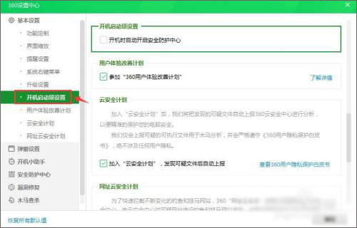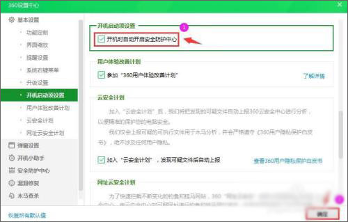 5、勾选“开机时自动开启安全防护中心”选项并点击下方“确定”即可设置成功了。