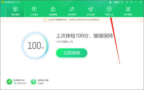 1、打开360安全卫士进入到主界面后,点击功能大全。
