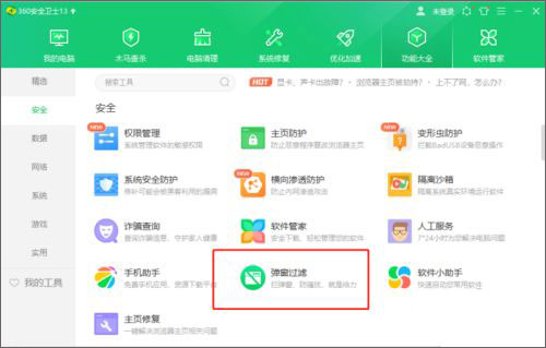 3、进入到安全界面后,找到弹窗过滤,并点击它。