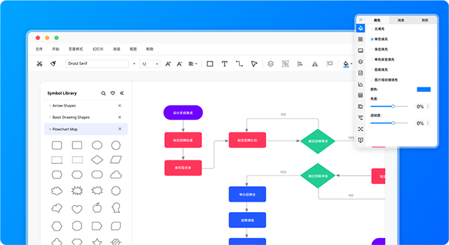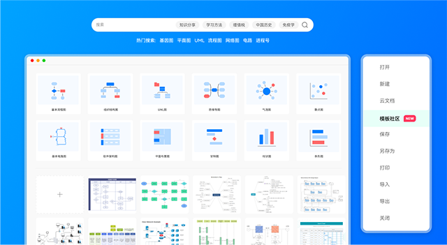 使用现成的符号和模板创建流程图,组织结构图,网络图,工程电路图,思维导图,房屋平面图,信息图等等。多种多样的模板和强大的图库,提高您的工作效率,让您短时间就可以创建出各种高级图表。