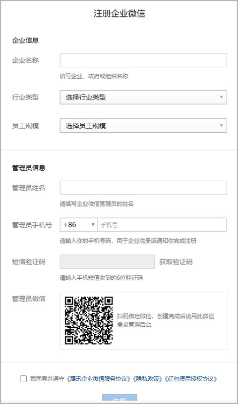 6、注册成功后,点击【进入管理后台】。之后,管理员再次登录管理后台。只需用电脑访问企业微信官网work.weixin.qq.com,用此前绑定的管理员微信扫描登录页面二维码,即可登录管理后台。