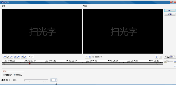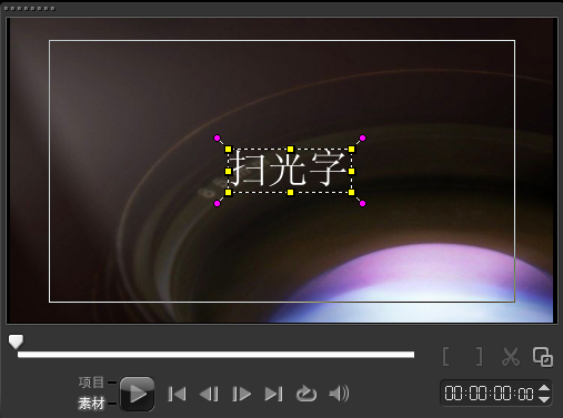 3、单击“标题”按钮,然后在预览窗口中双击鼠标,进入输入模式,输入内容“扫光字”。