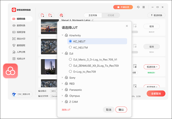 我感觉这个工具非常适合新媒体工作者或者经常需要编辑视频的人群,特别是它支持批量处理和高质量转换的特点,可以极大提升工作效率。软件还提供了一键应用LUT调色功能,这对需要专业色彩调整的用户来说是个很大的优势。总的来说,野葱视频转换器不仅功能强大,而且操作友好,是一个值得推荐的工具。