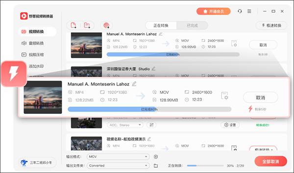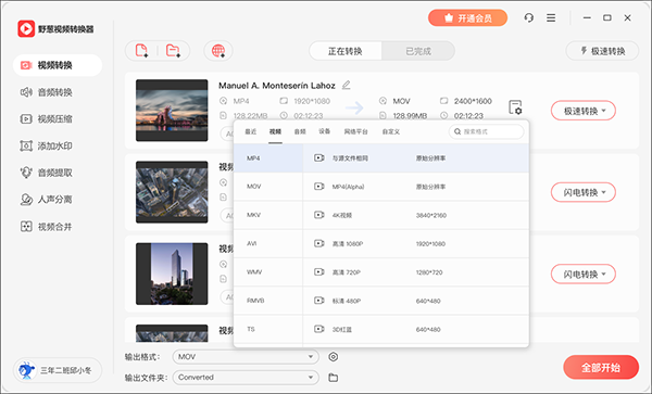 设置完毕后,选择下方的全部转换开始批量转换视频文件