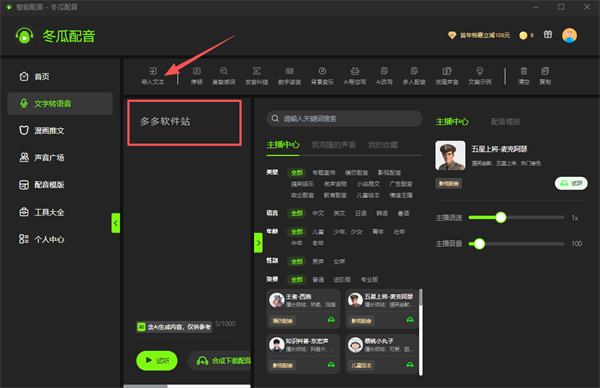 冬瓜配音电脑版是一个非常强大的配音工具,功能超级齐全,操作也简单。它不仅能将文字转成语音,还能直接复刻你的声音,感觉特别酷!不想用自己声音的话,还可以在“声音广场”里选主播音色,里面有超多风格的声音可以选择,完全能满足各种需求。