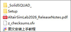 1、下载解压,得到Altair SimLab 2026原程序,以及_SolidSQUAD_激活文件;