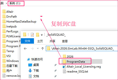 2、将_SolidSQUAD_激活文件解压出来,复制ProgramData文件夹到c盘替换【ProgramData属于隐藏文件夹】;