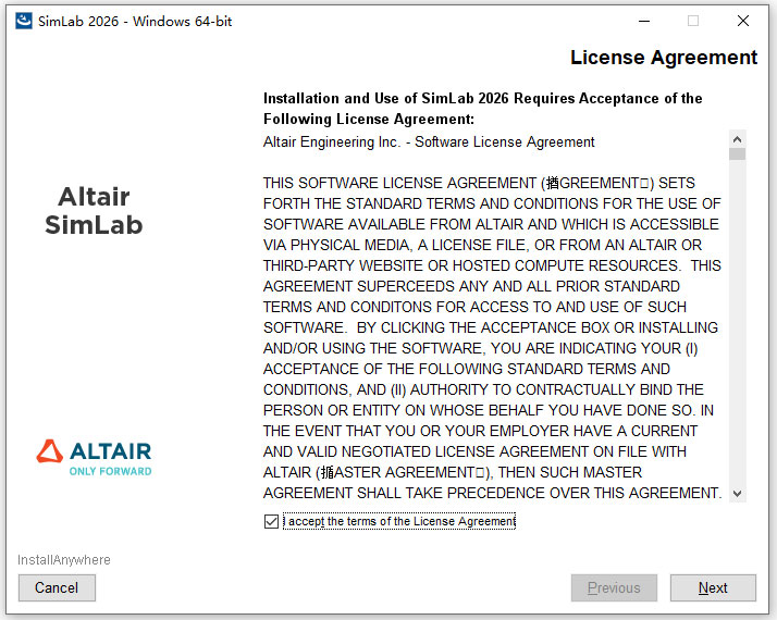 4、进入Setup文件夹,运行AltairSimLab2026_win64.exe文件,接受软件协议;
