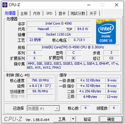 在处理器部分,CPU-Z上面显示着的就是这颗处理器的基本信息,比如说这颗名字为Intel Core i3-4130,同时也我们平时所购买的CPU的型号。第二个是代号,指的是这颗CPU所采用的架构和核心名称,比如Intel方面近五代的架构分别为“Iny Bridge”、“Haswell”、“Boardwell”、“SkyLake”和最新的“Kaby Lake”;AMD方面则复杂的多,主要各个城市的风景为主。比如说FX-8350的代号为“Zambezi(赞比西河)”,而FX-9590的代号为“Vishera(维拉舍河)”,A10-7870K的代号则是”Godavari(戈达瓦里河)”。