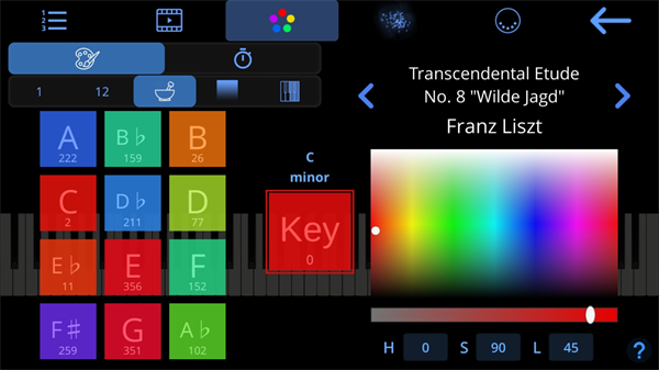 为了让观众通过颜色看到和理解音乐的和谐,seemusic为12种高中音的每一种音色提供一个颜色,播放音符时,会使用为该音高选择的颜色来可视化每个音符,能够为现场音乐会创建最顶级的投影视觉效果。而且seemusic还可以连接到各种带有MIDI输出的键盘或乐器,还可以录制同步的音频和MIDI数据,这样即使用户手头没有乐器,也可以播放出音乐表演的可视化效果。